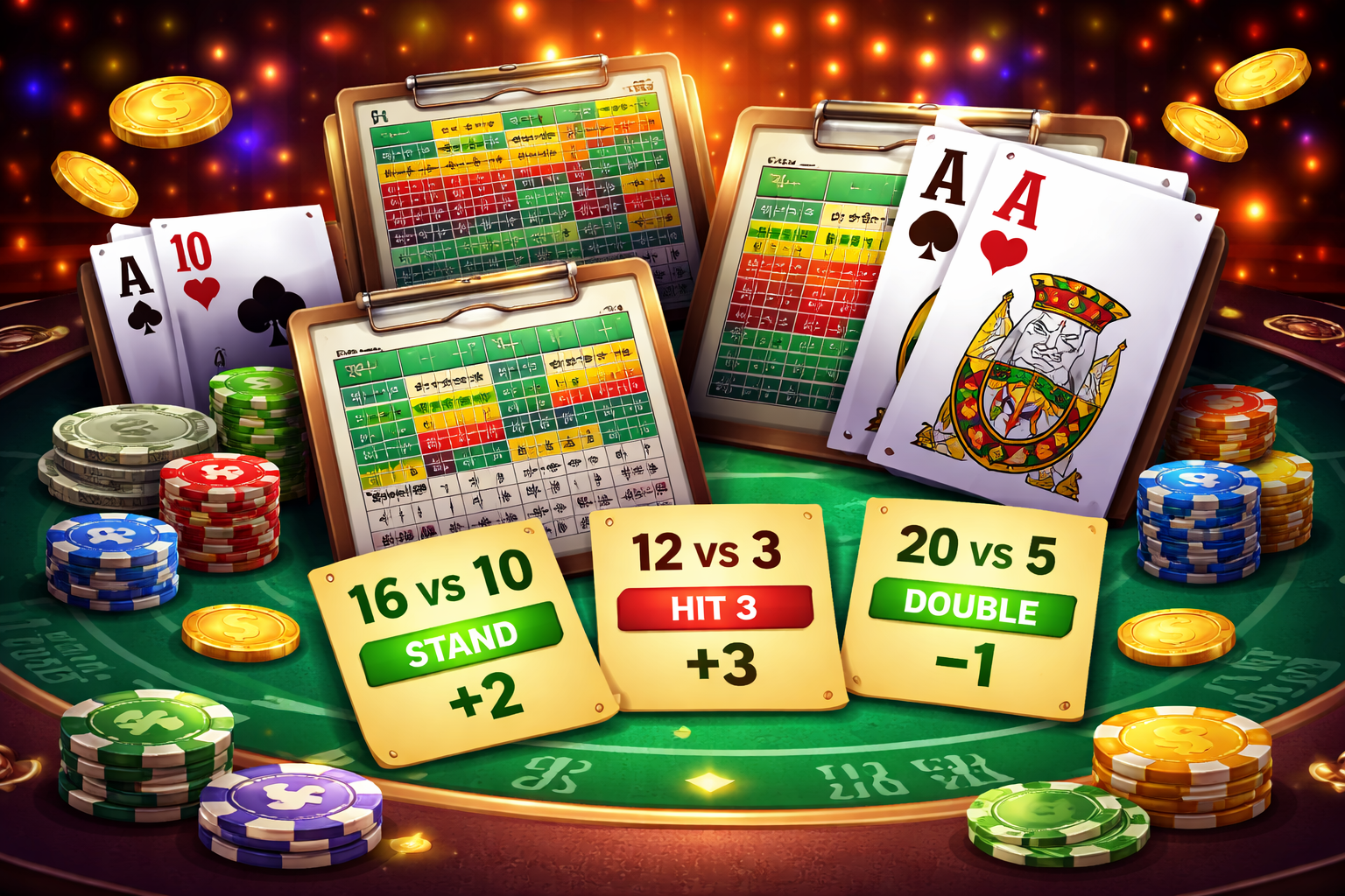 💡Keep 40–60 base betting units available per session. At a $10 base bet, that's $400–$600 — enough runway to execute splits and doubles without chip pressure forcing suboptimal choices.